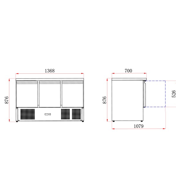Dimensions (H x W x D): 876 x 1368 x 700mm