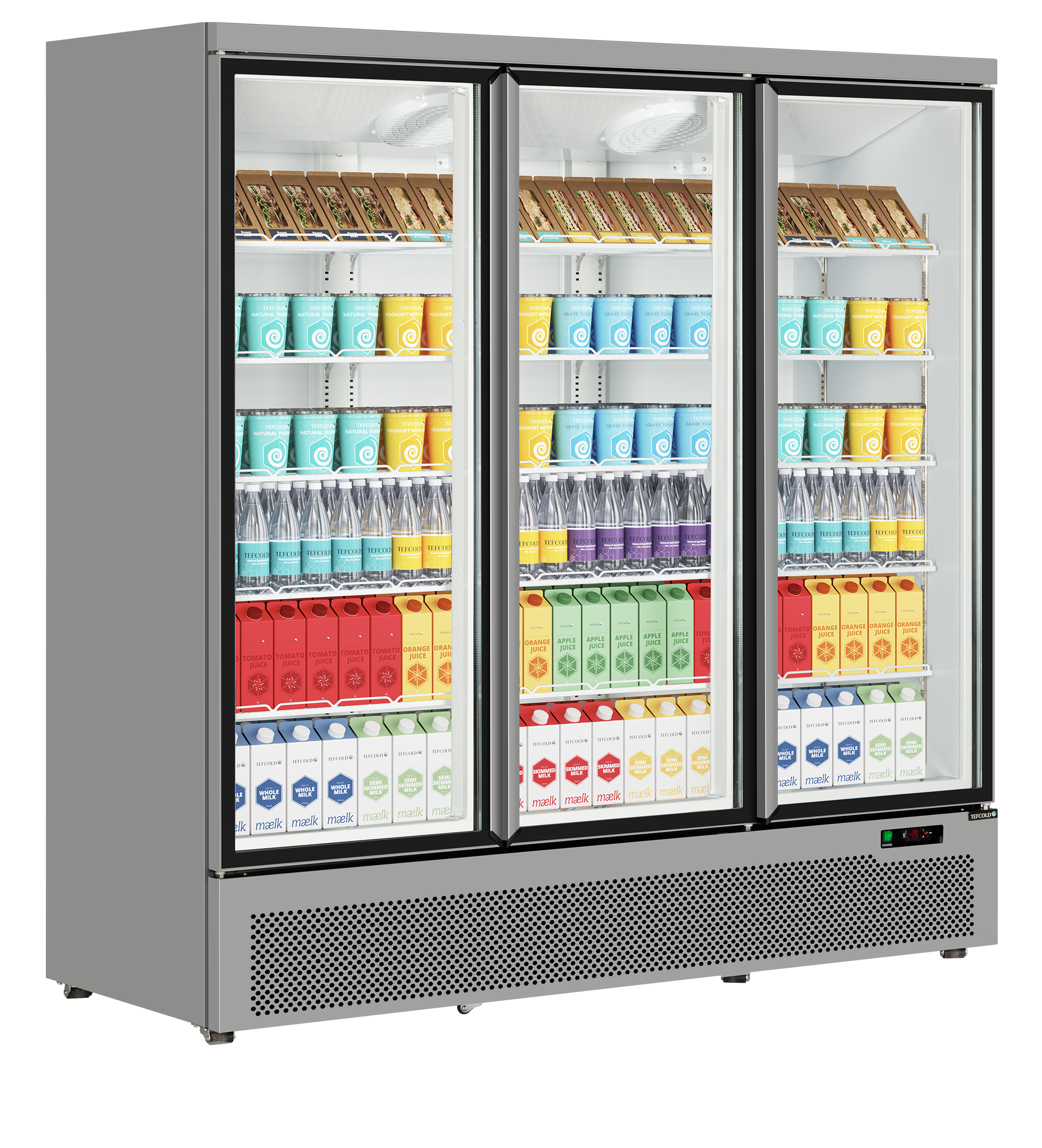 The Atom Maxi range of glass door chillers is available in 2 or 3 door options. Edge to edge “frameless” self closing glass doors together with excellent storage capacity make it ideal for all types of chilled food and drink displays. The canopy-less design makes it a favourite choice for shopfitters who use it in convenience stores, delis and butchers where a chilled food and drink selection enables extra choice. A white interior with vertical LED lighting helps present the produce to customers in the best light. The Atom Maxi provides a competitively priced solution to introduce chilled produce to your customers. There is also a matching freezer option available.