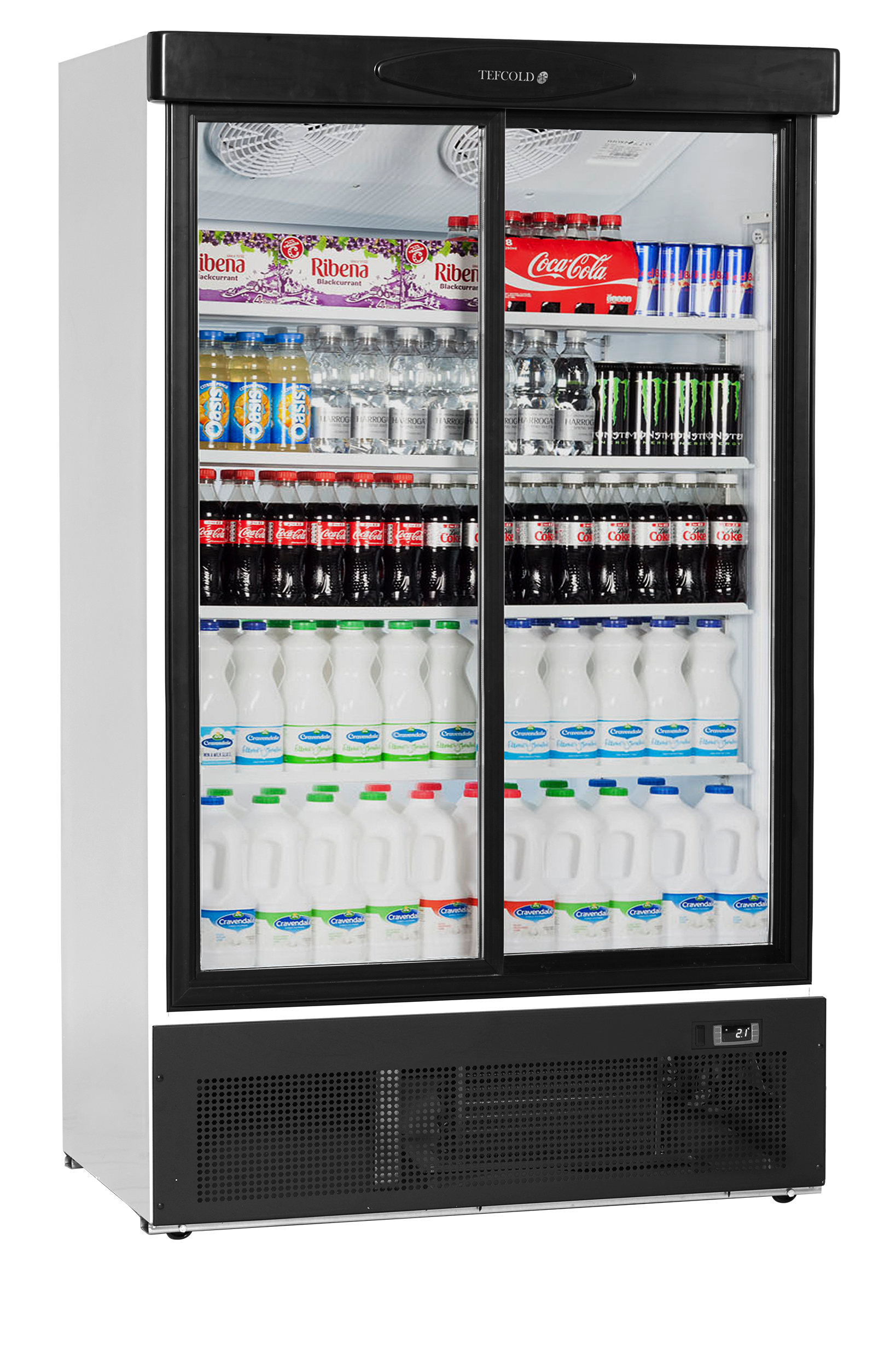 The TECOLD FS1002S & FS1202S are a range of sliding glass door merchandisers. They maximise the display space allowing higher glass doors, without a light canopy. They are versatile units suitable for drinks, dairy (milk, cheese etc) and sandwiches. Fan assisted cooling, vertical interior lights and self closing doors make it ideal for supermarkets, convenience stores, shops and cafés.