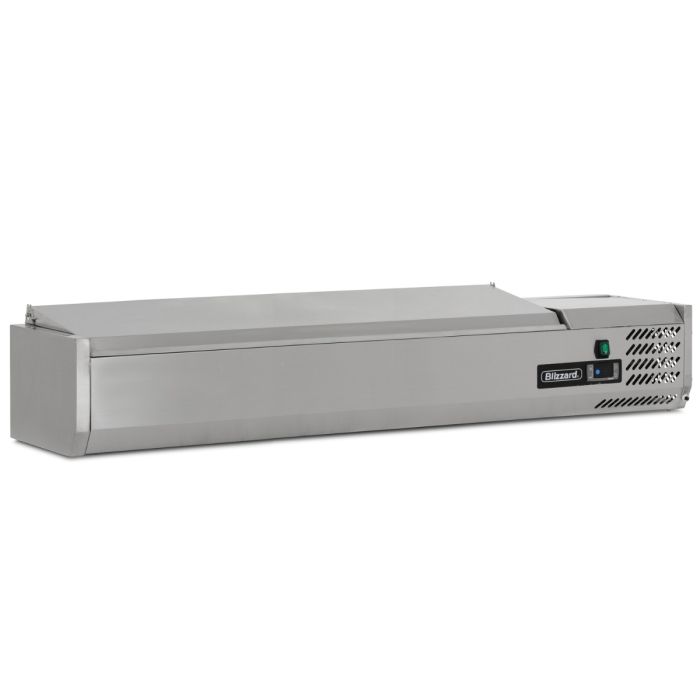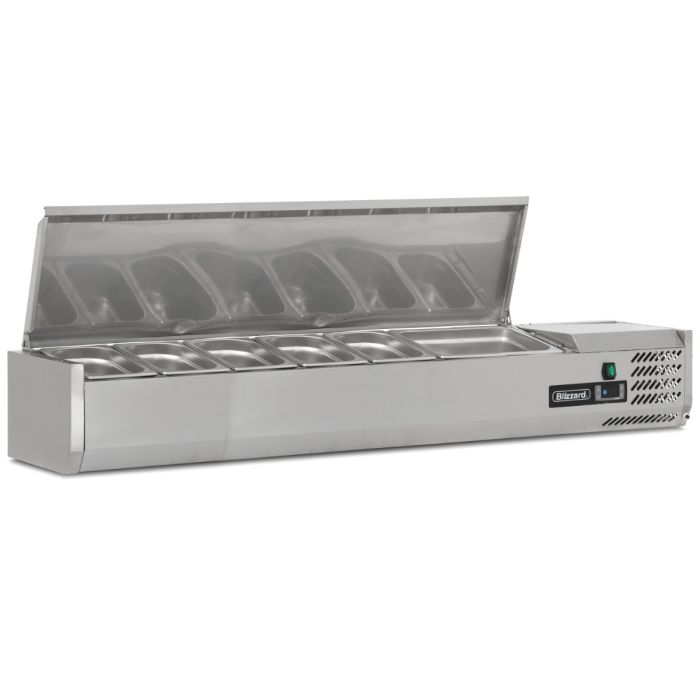 The TOP1500EN accepts 1/3 gastronorm containers up to 150mm deep. This size is highly versatile as it suits a wide range of fresh produce and prepared items. Whether you are storing vegetables, salad toppings or garnishes, the depth of the containers provides ample room. The unit does not come with containers as standard, giving you the flexibility to choose the right size and type for your menu.