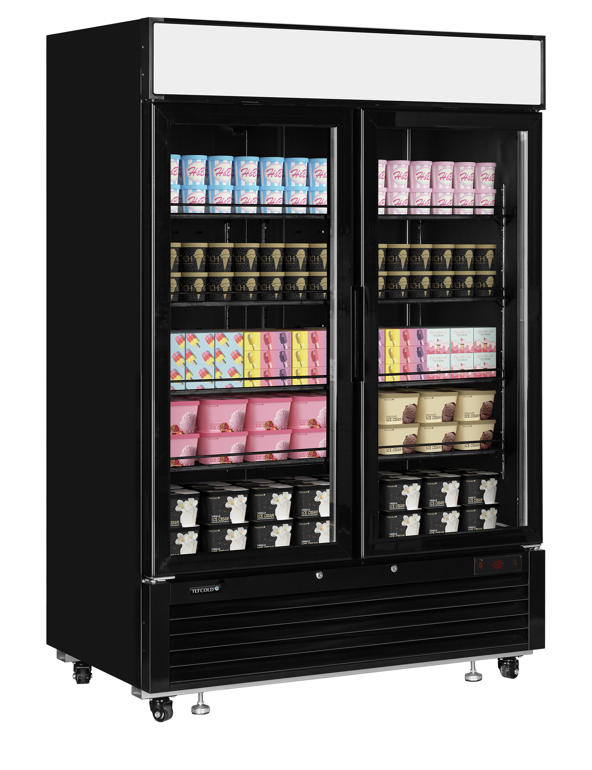 The LGF5000 is available in a sleek black finish, making it an excellent choice for establishments seeking a sophisticated and high-quality aesthetic. Each door boasts two vertical LED light strips for drawing attention to the product on display. The refrigeration system is highly energy-efficient, minimising operational costs while keeping your products at their optimal temperature.