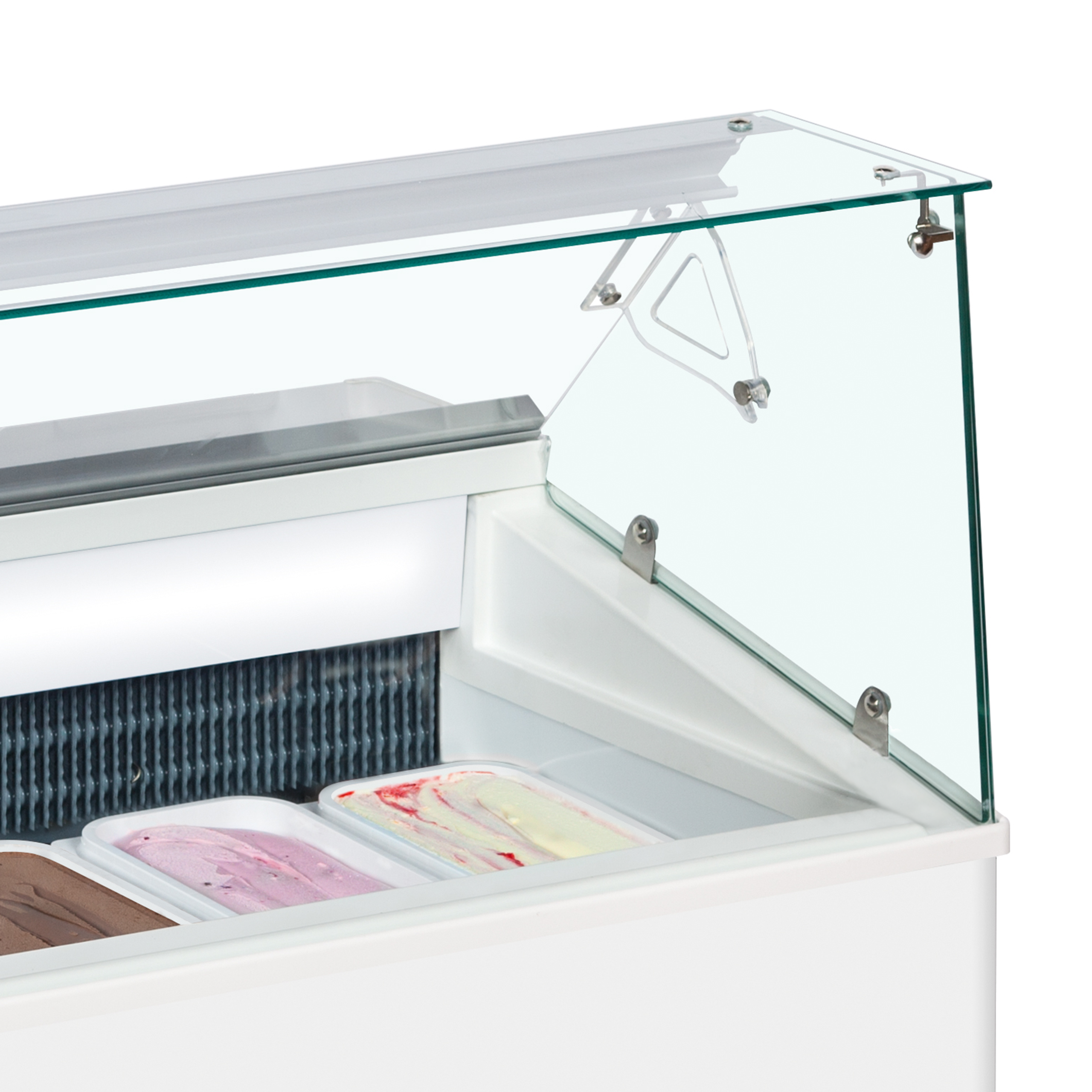 The TOP range of ice cream serve overs has long been a favourite cabinet in the ice cream world. With a 6 or 7 x 5ltr Napoli pan option, a light at the rear of the display helps illuminate the ice cream. The display is accessed from the rear with a flip up lid for hygiene and to help preserve the temperature when not in service. There is also separate refrigerated understorage accessed through a door to the rear of the cabinet. The Top range is supplied on castors.