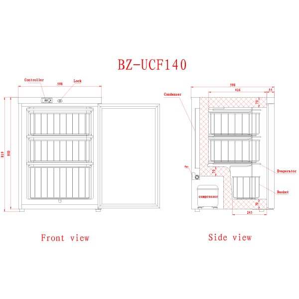 With a gross capacity of 115 litres and a net capacity of 85 litres, the UCF140 provides dependable storage for frozen goods. The interior includes two fixed shelves and three freezer baskets, allowing you to organise products for quick access during service. Staff can grab ingredients without delay, keeping kitchen operations smooth and efficient.