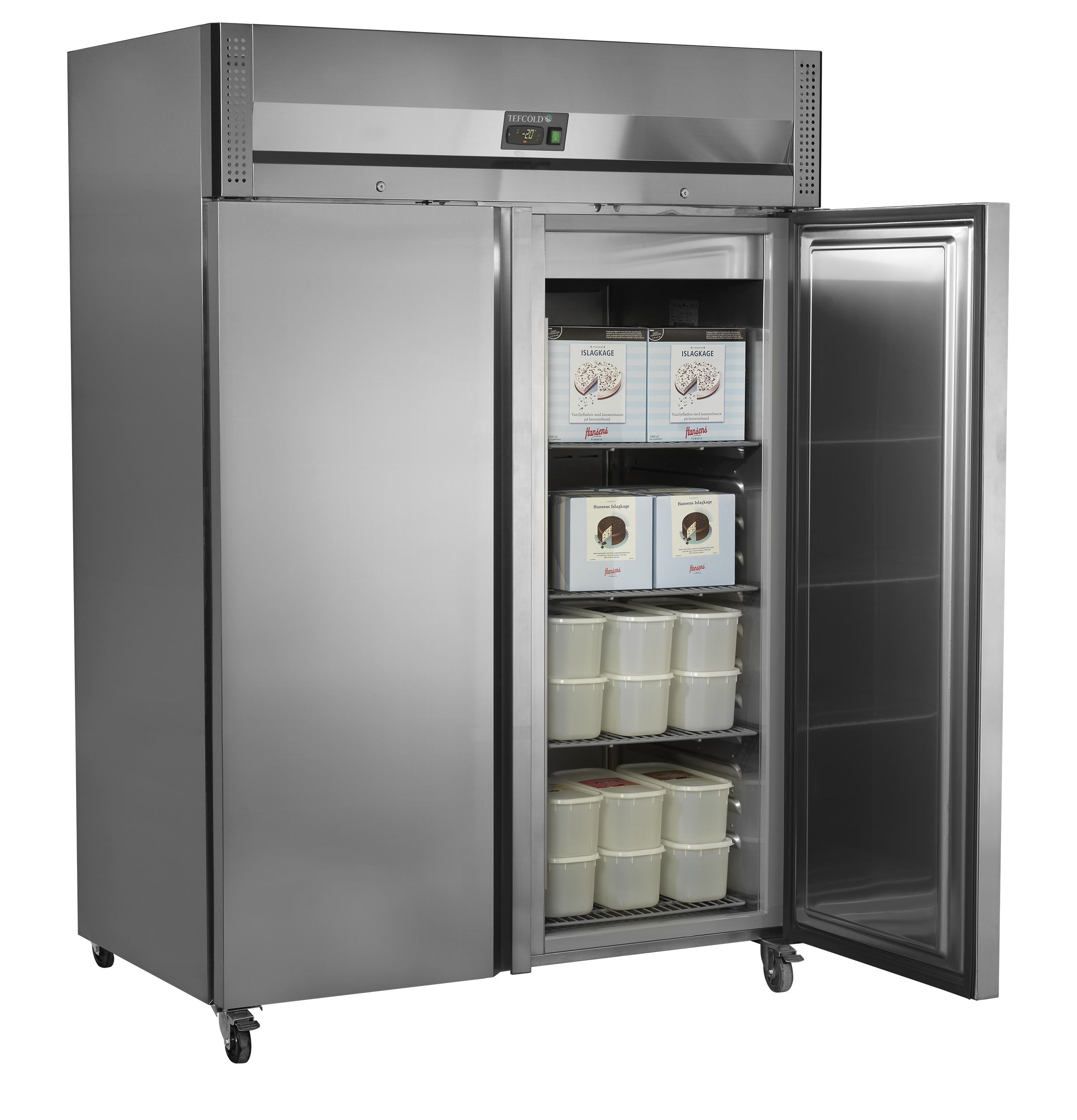 The RF-X GN dimension range of upright freezers with 1 or 2 solid doors is created for professional kitchens and have adjustable shelves in GN2/1 dimensions. It is made from high quality catering grade SS304 stainless steel and has strong wheels for mobility, which comes in handy in terms of cleaning. Ventilated cooling ensures an optimal temperature, which can be set on a digital thermostat – complete with Bluetooth for easy monitoring via an app. We also have a RF range for smaller spaces, but this does not have GN dimensions.