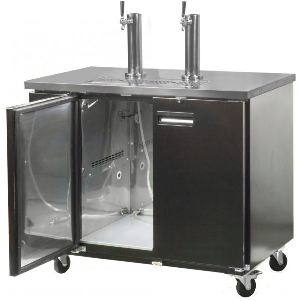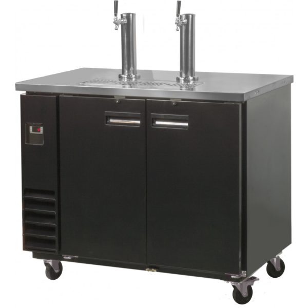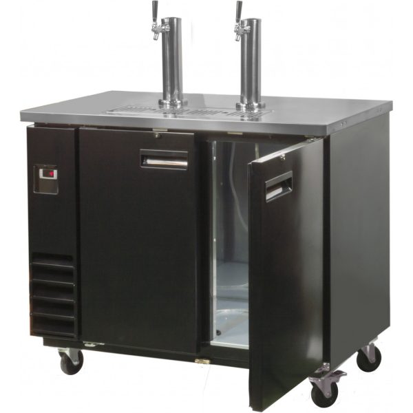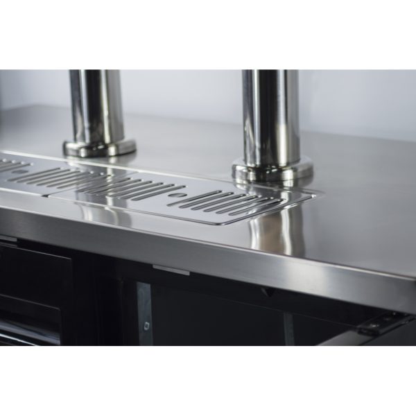Introducing the Prodis NTKC2, a double door, double tap keg cooler, professionally designed for the dynamic needs of bars, pubs and restaurants. These premium keg coolers are a blend of sophistication and functionality, destined to enhance your beer sales. The cabinet features forced air cooling for rapid temperature pull down, insulated beer columns with 1/2” keg connectors, built-in drip tray with removable drain pan situated underneath the cabinet and storage capacity for 2 x 1/2 keg (11gallon).