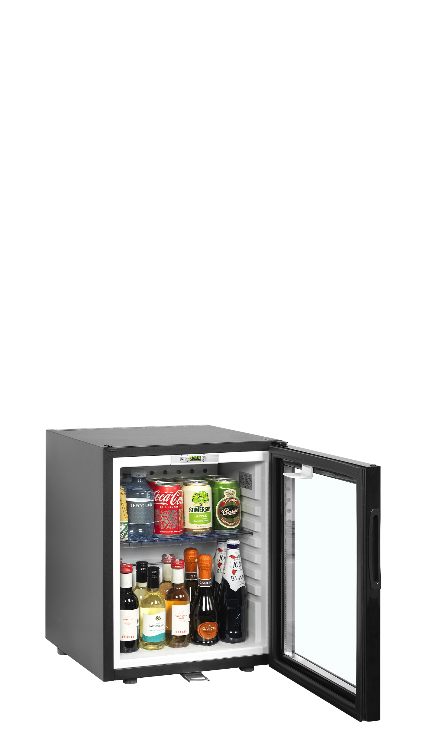 The innovative TM-GC range from TEFCOLD, designed as a modern alternative to traditional absorption minibars. Featuring a compressor refrigeration system, these minibars offer faster cooling and reduced consumption. With quiet operation at 38dB, smart programming for unoccupied periods, and convenient one-press functions, they are ideal for hotel rooms and boardrooms. Coupled with an elegant glass door, the design ensures excellent product presentation, enticing guests with a visually appealing display of cold beverages and snacks.