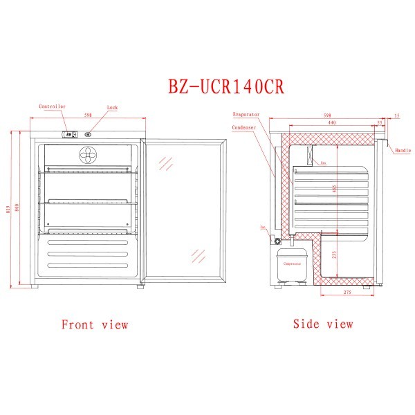 For food storage, the UCR140CR provides flexible solutions. The fridge includes three adjustable wire framed shelves as standard that allow you to adapt the space for bottles, packaged goods or prepared ingredients. This adaptability makes it especially useful in busy kitchens where stock changes frequently throughout service. A glazed door with a replaceable gasket ensures a secure seal while offering the convenience of easy maintenance when the time comes to replace the gasket.