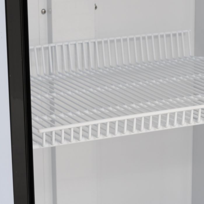 The GD350 includes a bold black door frame that contrasts neatly with its white laminated exterior. This modern design complements most retail interiors while making the unit simple to keep clean. The interior features durable, white pre-painted aluminium, offering a hygienic surface that resists wear and stains.