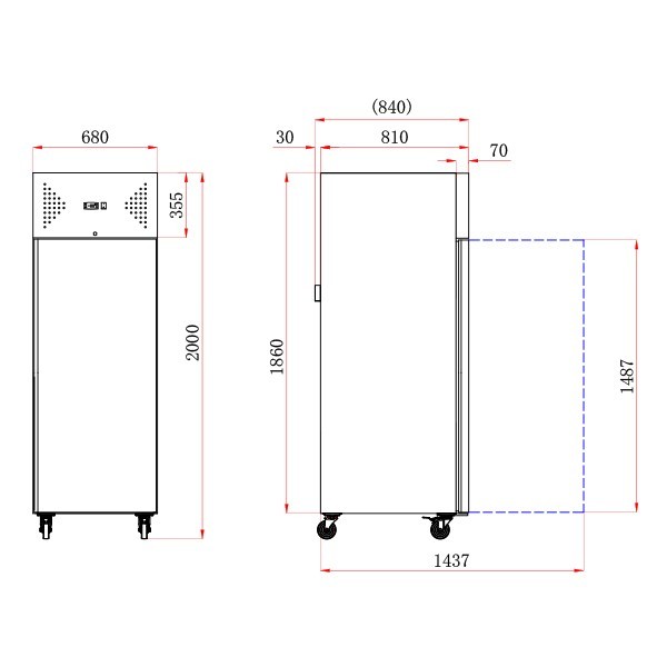 External dimensions (HxWxD): 2000 x 680 x 840mm