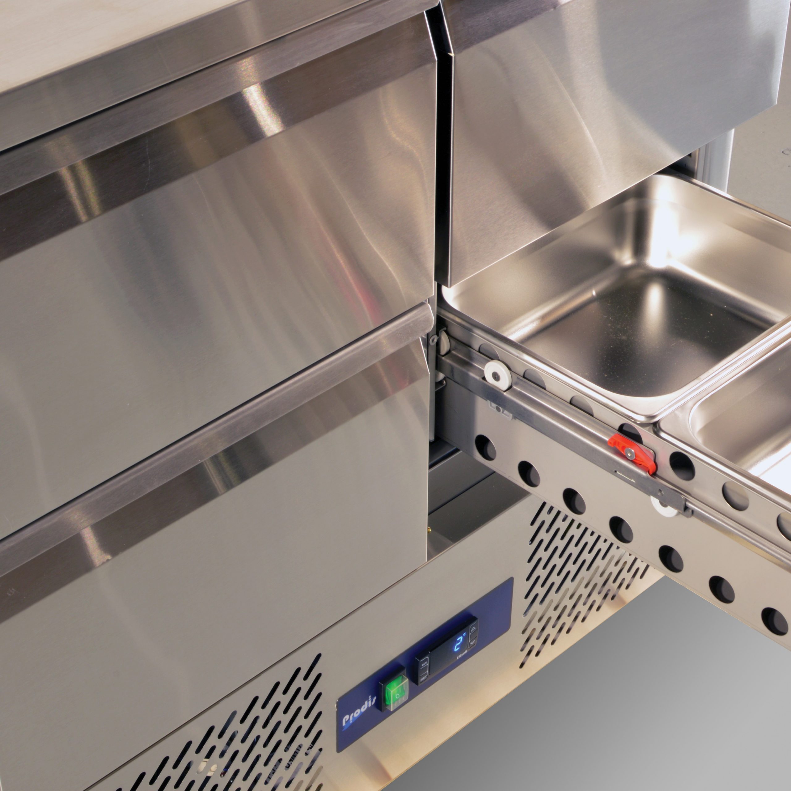 Upgrade your kitchen with the redesigned 2025 Prodis EC4DSS-LE 4-drawer saladette counter, engineered specifically to deliver superior cooling while significantly reducing your energy bills.