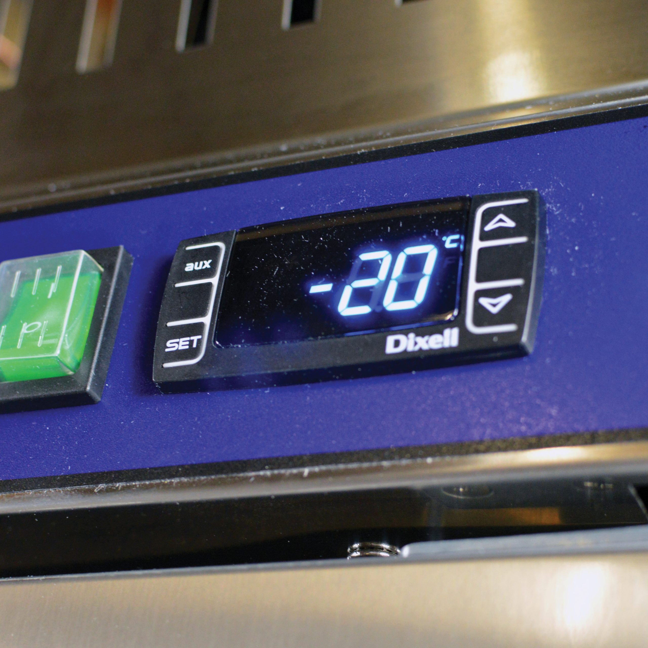 The GRN2F by Prodis, a heavy duty upright service freezer, constructed entirely from stainless steel inside and out. The GRN series are fully gastronorm compatible and feature adjustable gastronorm guide sets and shelves as standard. All GRN cabinets are fitted with an externally mounted digital temperature controller to ensure a consistent temperature and easy monitoring.